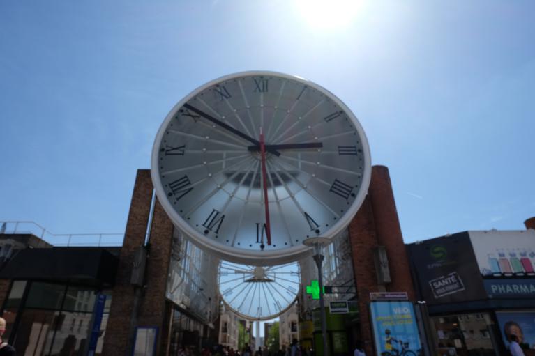 Départ dos à l'Horloge de la gare de Saint Christophe, côté pharmacie.